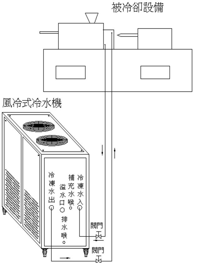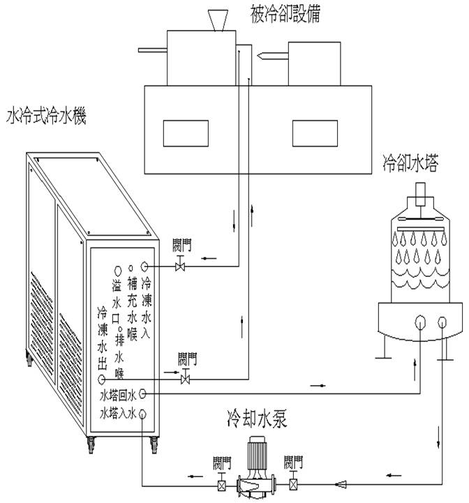2、冷(leng)凍水喉及冷卻(que)循環水喉是否(fǒu)接通管路,并保(bǎo)持閥門打🐪開🔞;(請(qǐng)參考安裝示意(yì)圖)
